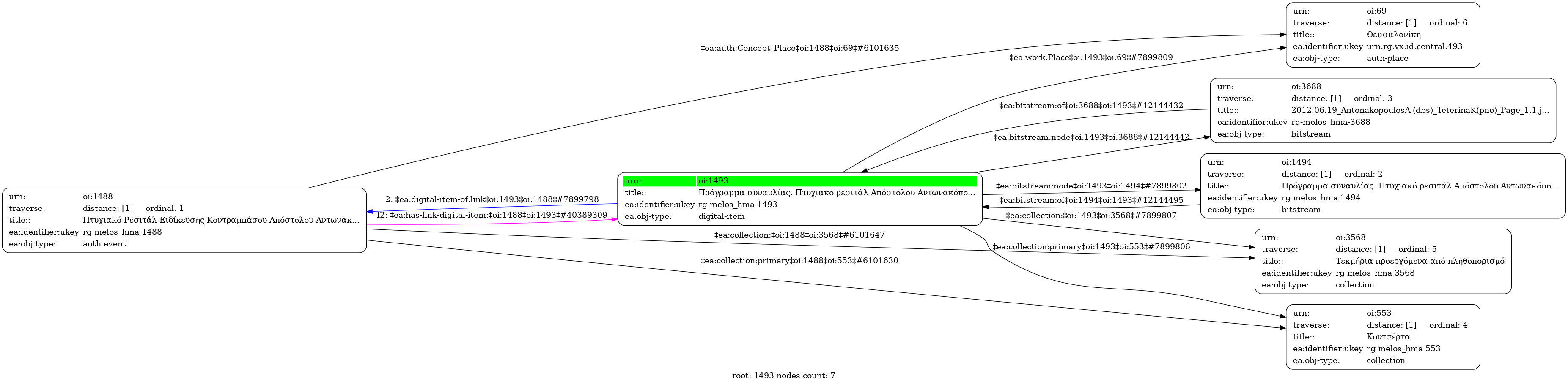 Internal display of the 1493 entity interconnections (Node labels correspond to identifiers)
