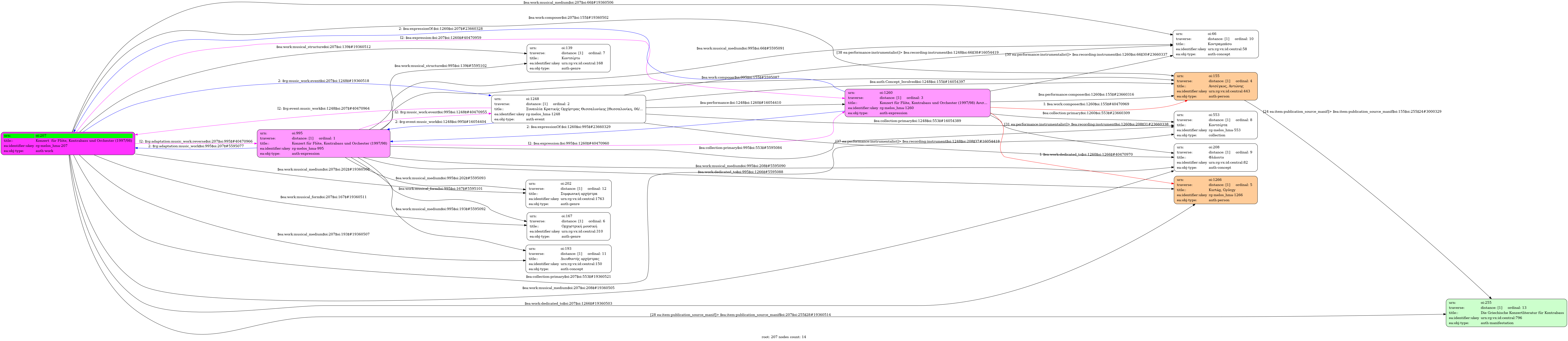 Λίγο μετά την ολοκλήρωση του έργου, ο συνθέτης αφιέρωσε το πρώτο μέρος του κοντσέρτου στον György Kurtag, όταν ανακάλυψε ένα τρίο του για φλάουτο, κοντραμπάσο και πιάνο. Το έργο αποτελείται από τρία μέρη, εκ των οποίων μόνο το δεύτερο (και κύριο) απαιτεί τη συνολική συμμετοχή των εκτελεστών της ορχήστρας. Στο πρώτο μέρος (Οκτώβριος/Νοέμβριος ’97) απουσιάζουν τα ξύλινα πνευστά, καθώς και τα έγχορδα της ορχήστρας, με εξαίρεση ένα βιολί και ένα κόντρα φαγκότο, που συμβολίζουν αντιθετικά τους πόλους των δύο πρωταγωνιστικών οργάνων.