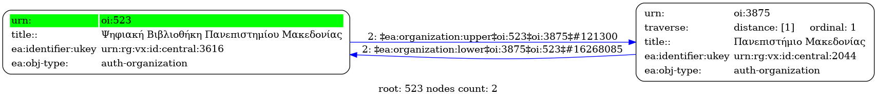 Internal display of the 523 entity interconnections (Node labels correspond to identifiers)