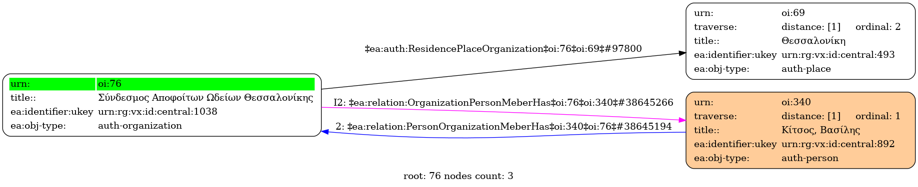 Internal display of the 76 entity interconnections (Node labels correspond to identifiers)