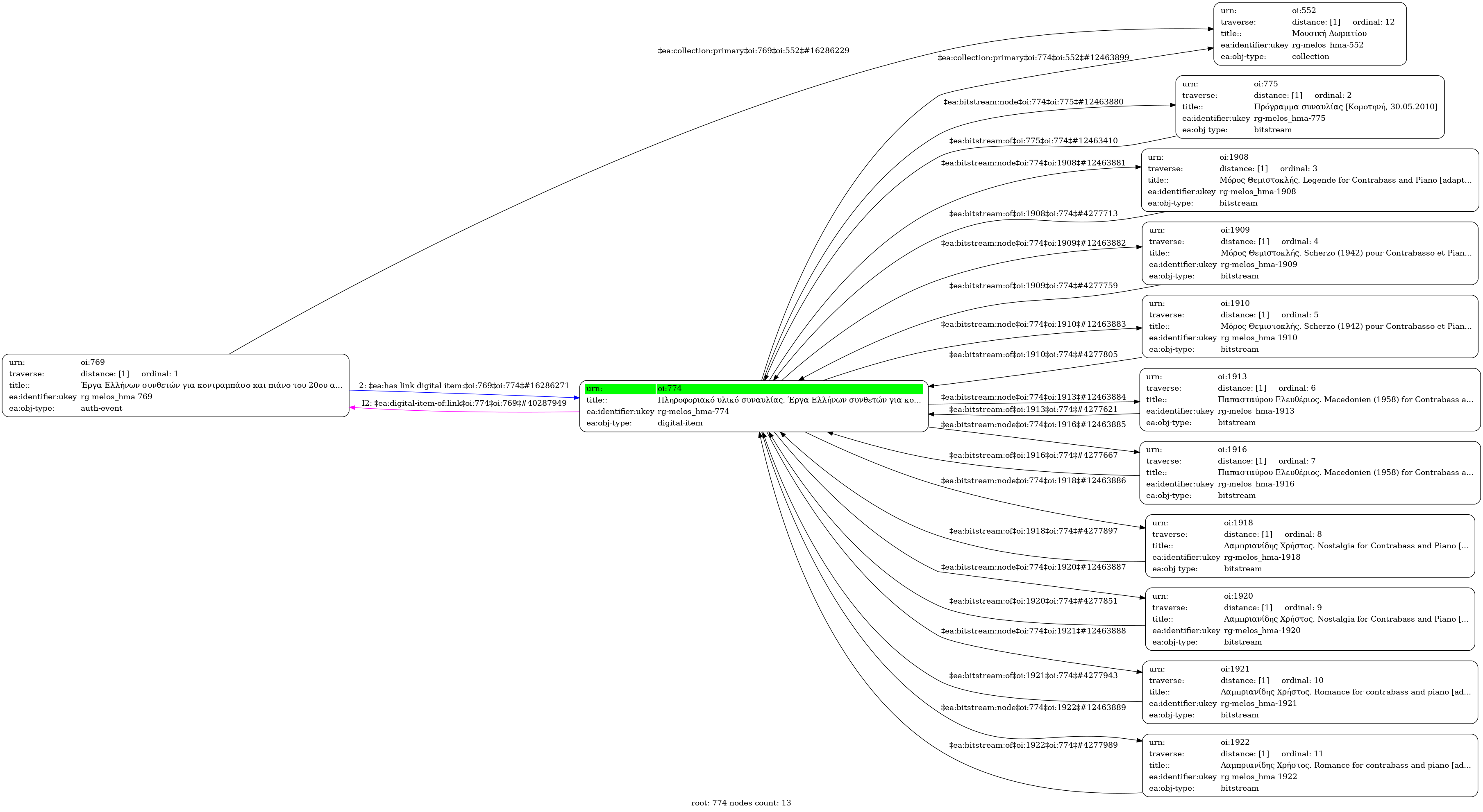 Internal display of the 774 entity interconnections (Node labels correspond to identifiers)
