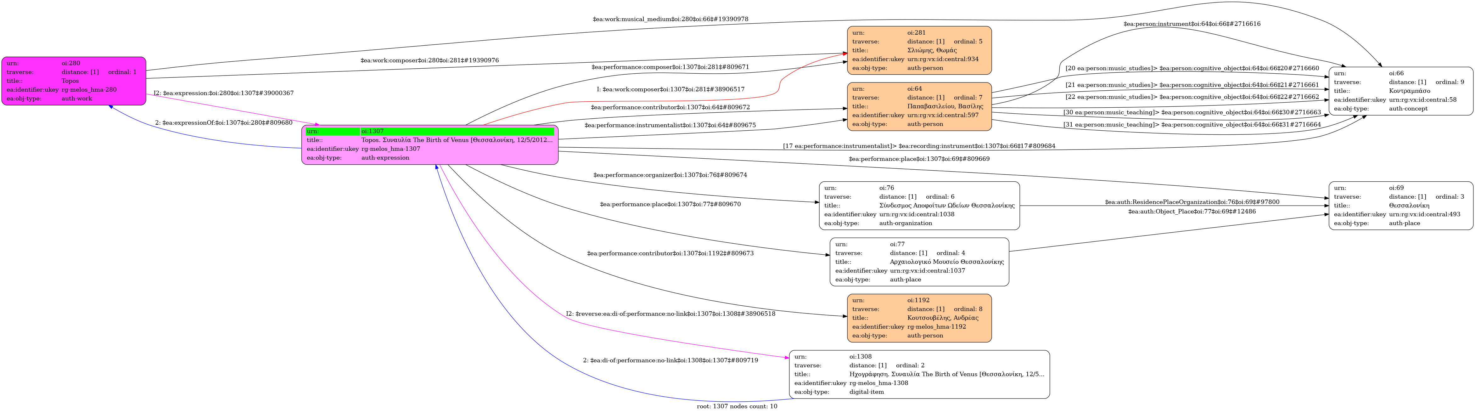 Internal display of the 1307 entity interconnections (Node labels correspond to identifiers)