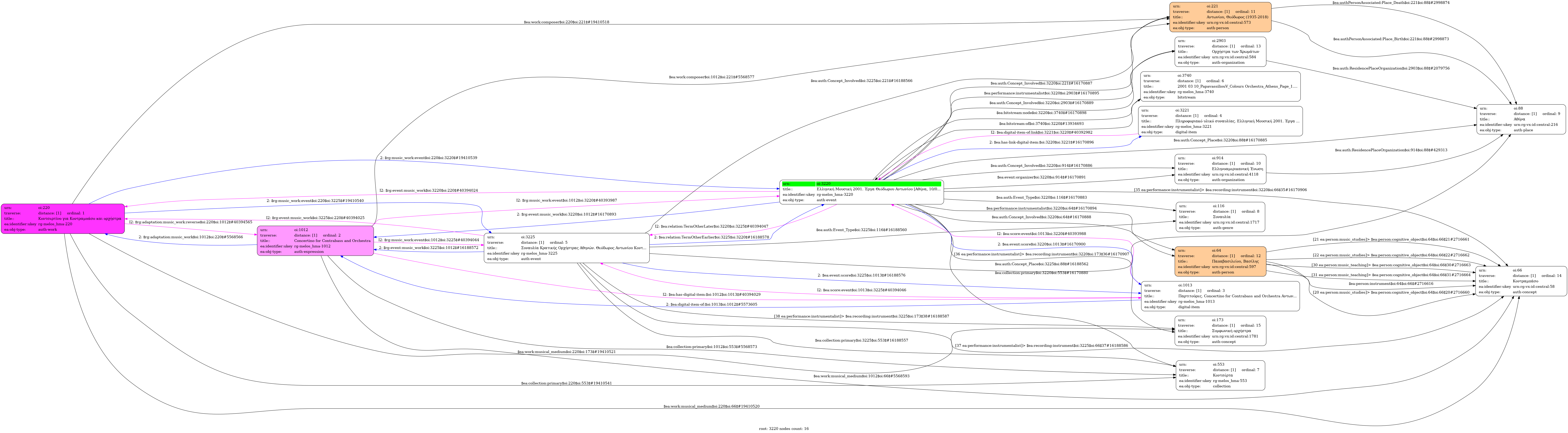 Internal display of the 3220 entity interconnections (Node labels correspond to identifiers)