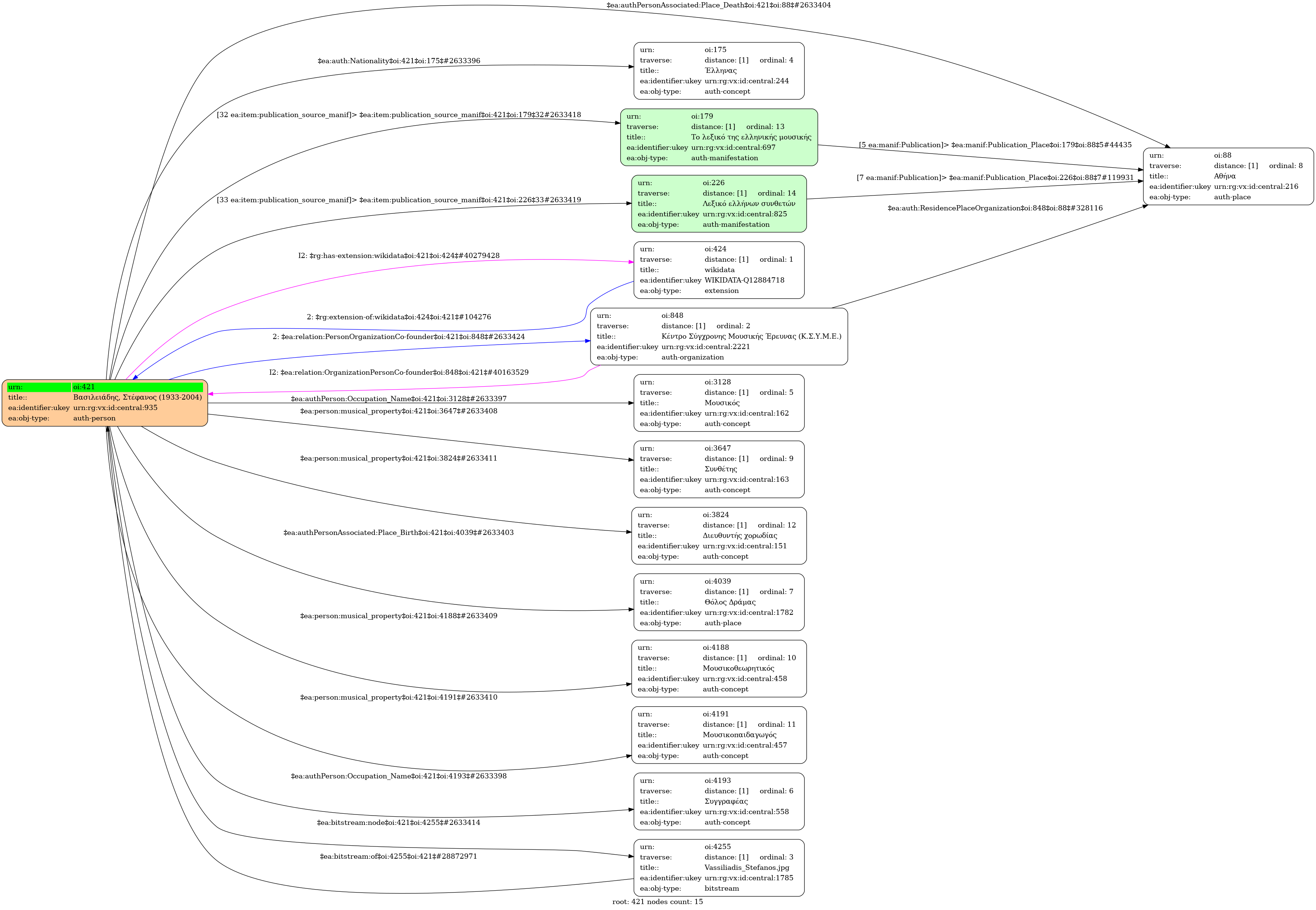 Internal display of the 421 entity interconnections (Node labels correspond to identifiers)