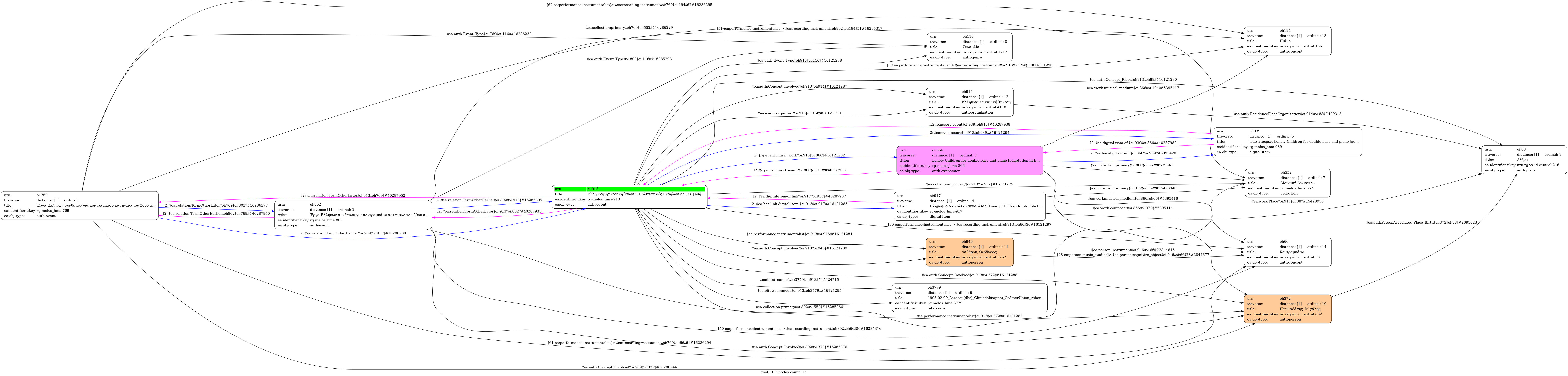 Internal display of the 913 entity interconnections (Node labels correspond to identifiers)